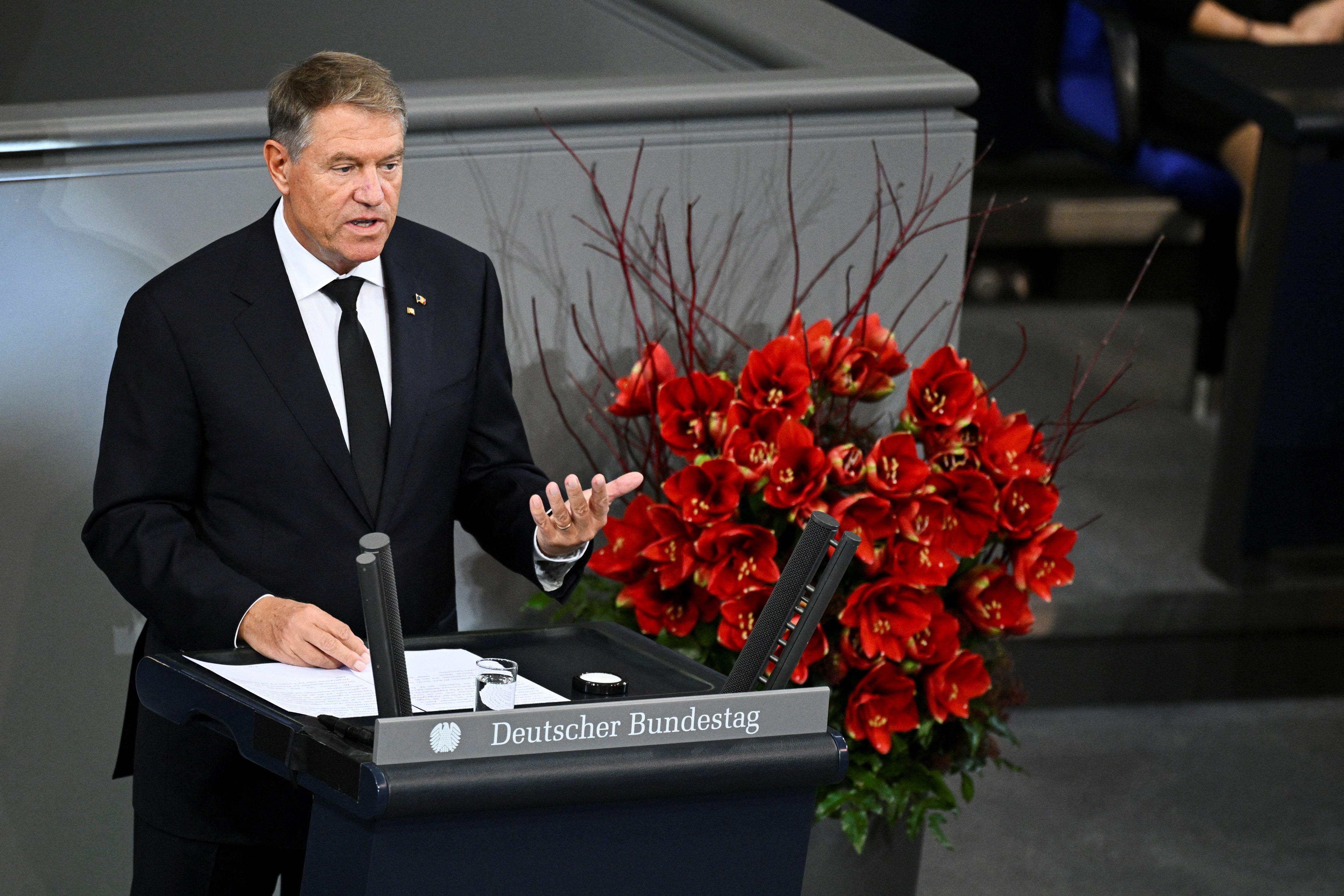 罗马尼亚总统克劳斯·约翰尼斯在德国柏林下议院联邦议会的纪念日仪式上发表讲话,时间为2024年11月17日。路透社/安妮格雷特·希尔斯/档案照片布加勒斯特,12月22日(路透社)- 罗马尼亚即将卸任的总统克劳斯·约翰尼斯周日表示,他对很快从亲欧盟的执政多数中指定一位总理“感到乐观”,因为执政的社会民主党重新回到了联盟谈判。在11月24日的第一轮总统选举中,一位鲜为人知的极右翼亲俄政治家获胜,导致罗马尼亚总统和议会的选举陷入混乱,罗马尼亚最高法院因怀疑俄罗斯干预而宣布选举无效。预计将在2025年上半年重新进行投票。