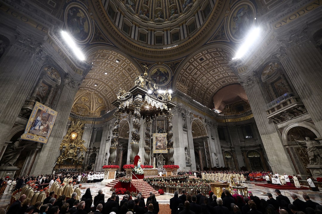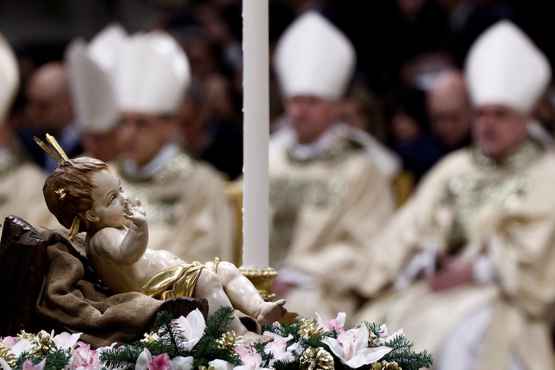 第1项,共5项 教皇方济各在2024年12月24日于梵蒂冈的圣彼得大教堂庆祝平安夜弥撒。路透社/古列尔莫·曼贾帕内