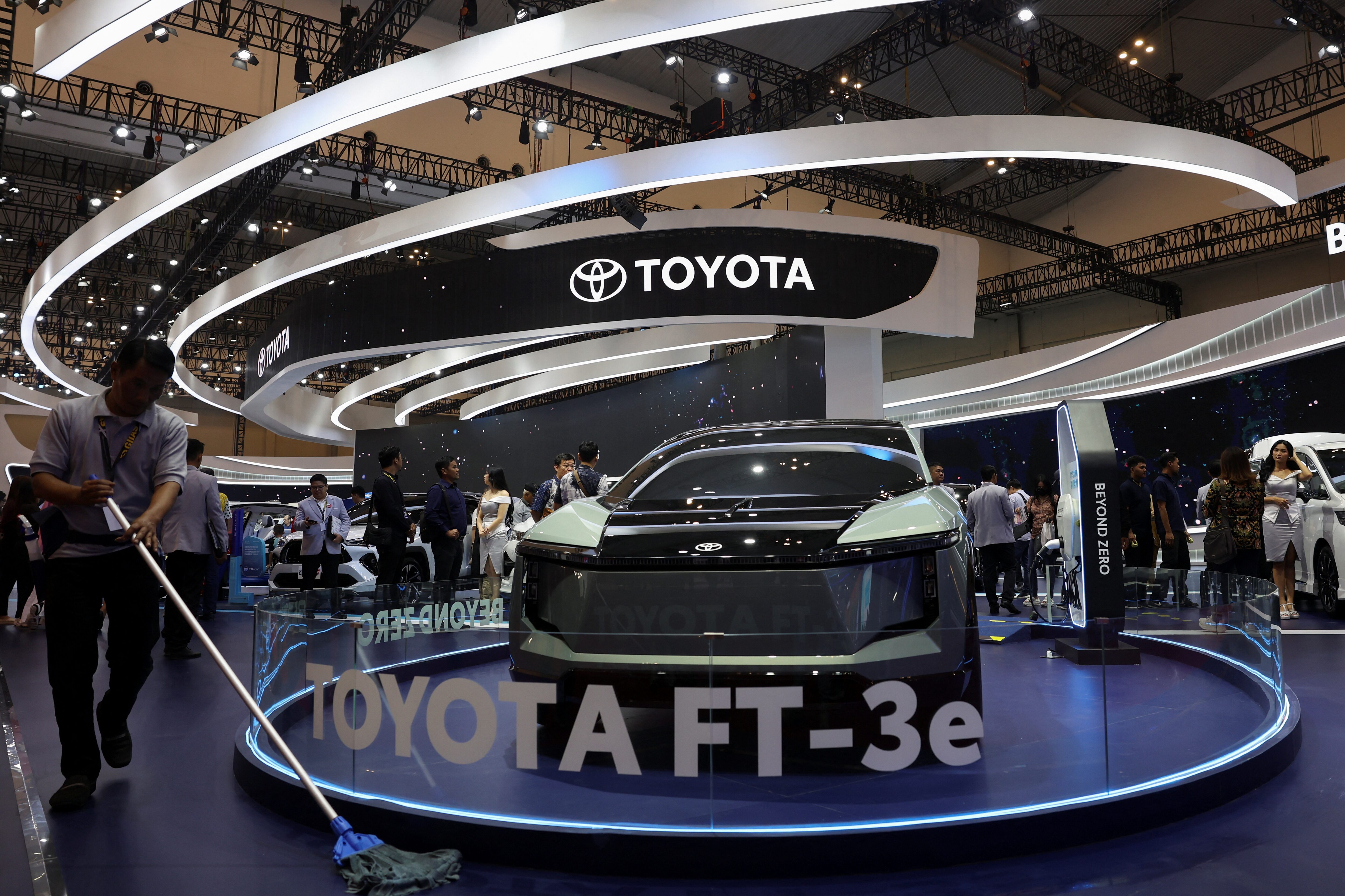 工人在2024年7月18日的印度尼西亚国际汽车展上清洁一辆丰田FT-3E汽车旁的地面。摄影:阿金·迪纳尔·奥尔菲安 - 路透社东京12月25日(路透社) - 日本丰田汽车公司今天星期三表示,尽管由于美国和中国需求的增长,其全球销量连续第二个月增长,但其全球生产在11月连续第十个月下降。