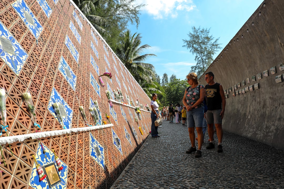 数百人前往海啸墙,一个位于仪式旁边的纪念地点,向失去的亲人致敬。
