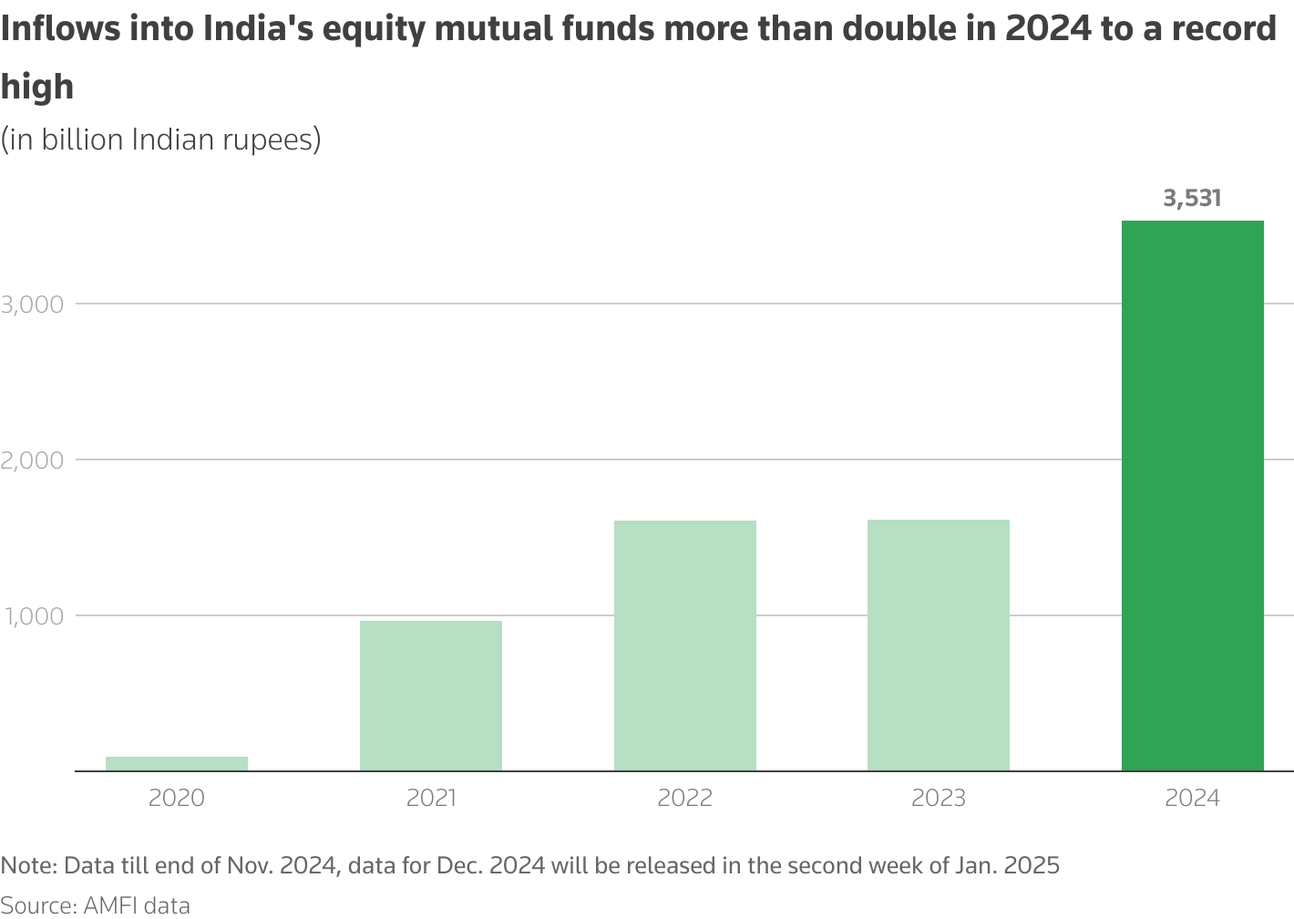 2024年印度国内共同基金的资金流入超过翻倍,创下历史新高