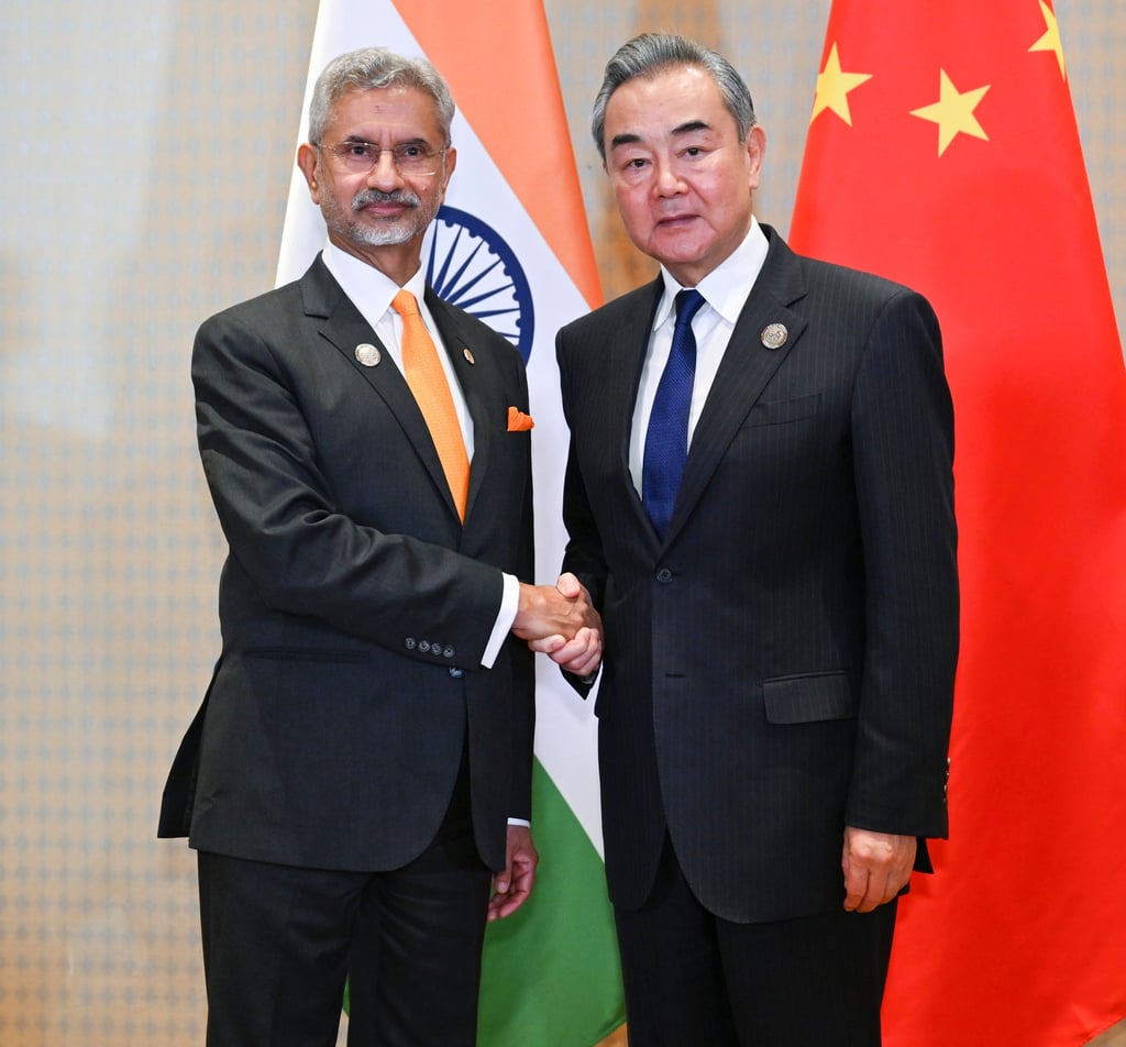 中国外交部长王毅周一在巴西里约热内卢与印度外长苏杰生握手。图片来源:新华社