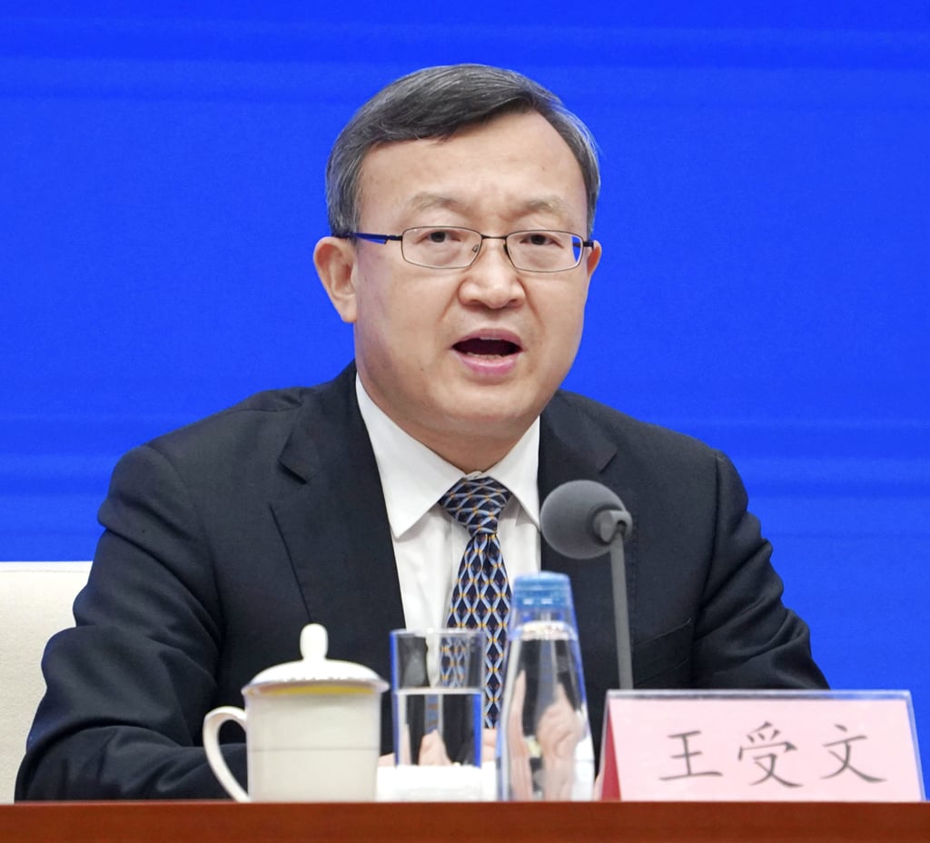 2023年4月23日,中国商务部副部长王受文在北京出席记者会。共同社照片