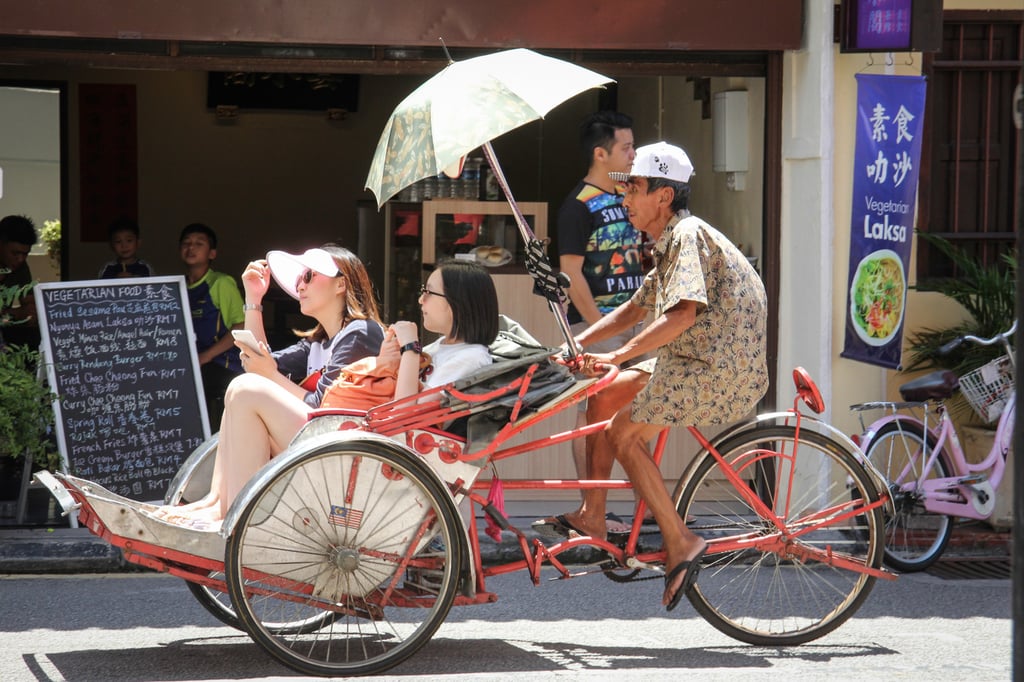 槟城独特的三轮车仍在繁忙地载着游客穿梭于城市中。照片:John Brunton