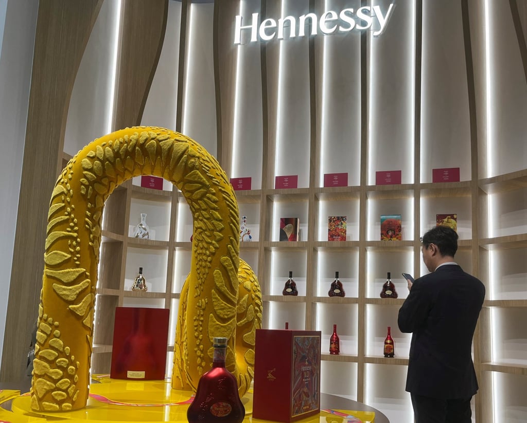 11月7日,一名男子站在上海中国国际进口博览会轩尼诗展台。图片来源:路透社