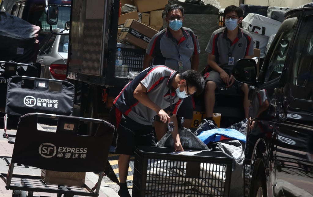 2021年8月18日,香港旺角区的顺丰快递员。摄影:Jonathan Wong