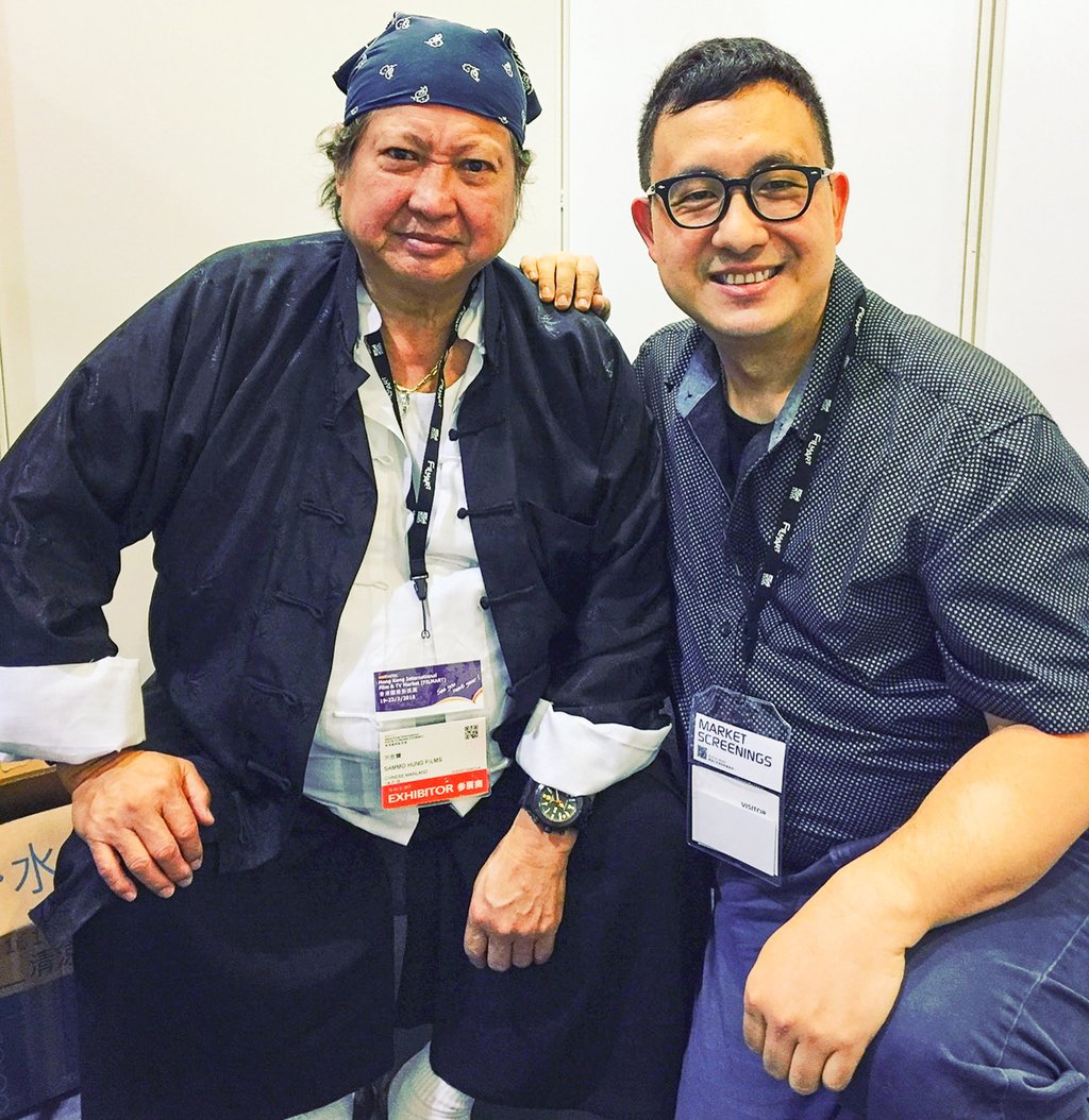 2017年香港国际影视展上,Frank Djeng与功夫片传奇洪金宝为纪录片《克隆人》接受采访。照片:Frank Djeng