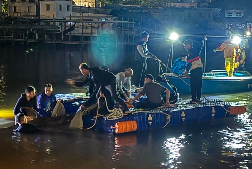 周六晚间,当局尝试营救这头鲸鱼并阻止公众过度靠近。图片来源:Facebook/Man Fai