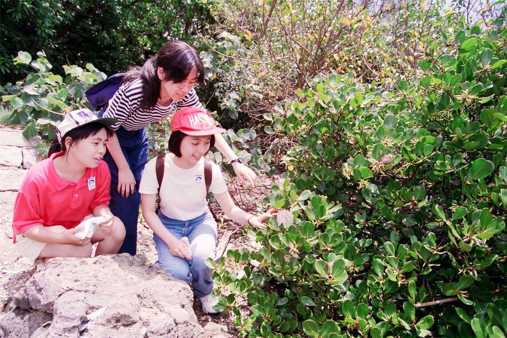1995年,三名青年参加世界自然基金会(WWF)在新界大埔举办的生态课程。图片来源:南华早报档案