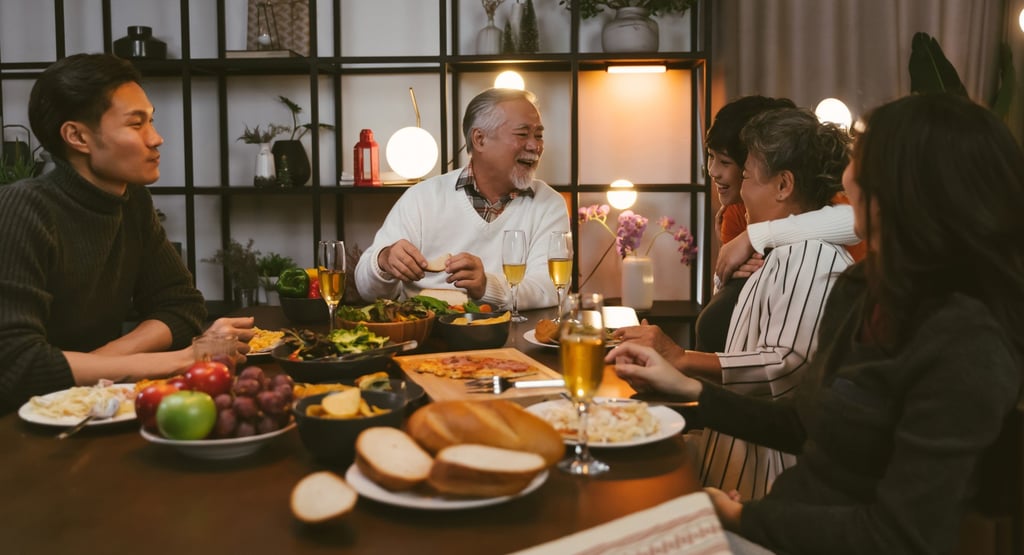 亚洲家庭共进晚餐场景。一项新研究表明,从以肉类为主的饮食转向植物基饮食可大幅减少温室气体排放。图片来源:Shutterstock