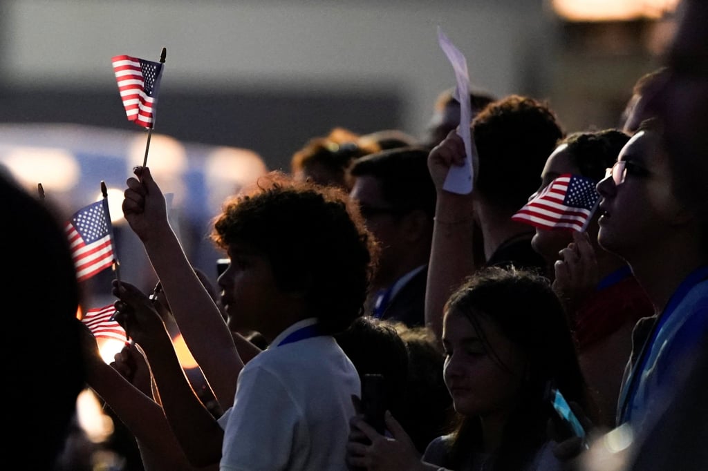 周一,拜登的支持者挥舞美国国旗欢迎其抵达安哥拉罗安达国际机场。照片:路透社