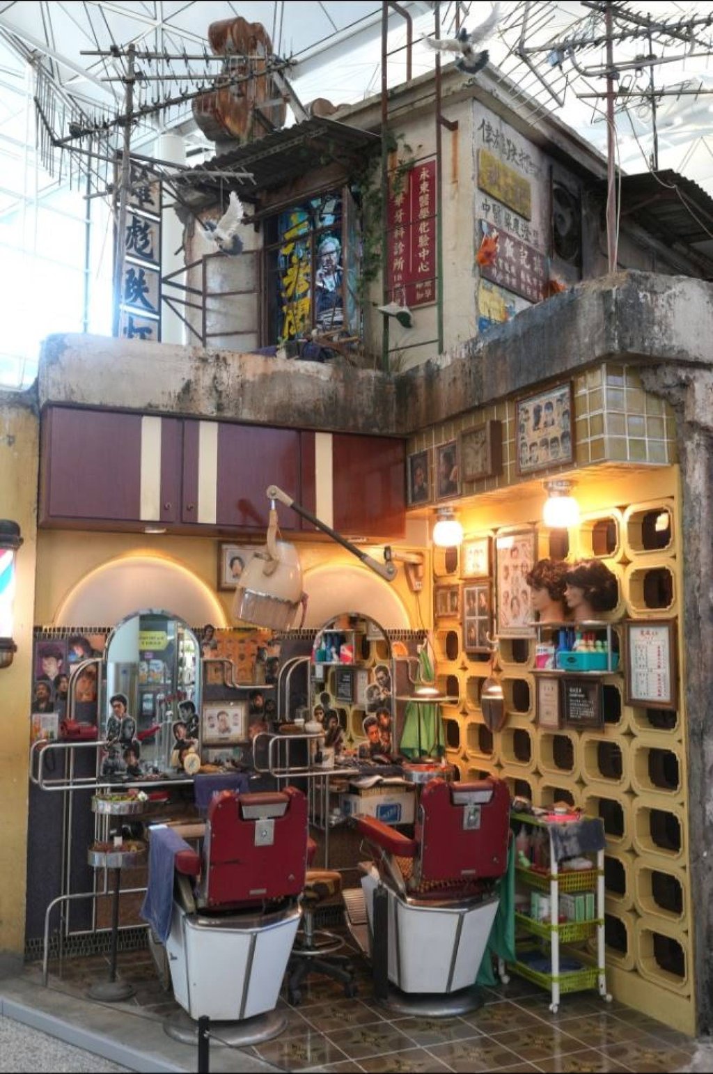 展区复原了多组电影场景,如图中这间理发店。摄影:Sam Tsang