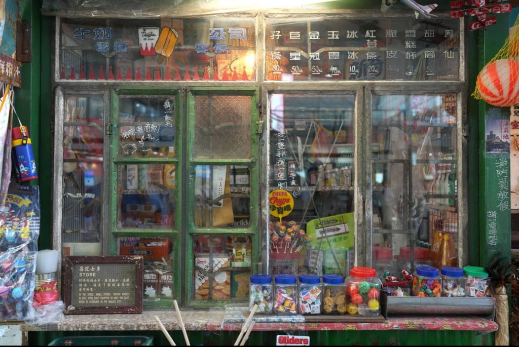 展区陈列了多件电影场景复原装置,如图中这家店铺门面。摄影:Sam Tsang