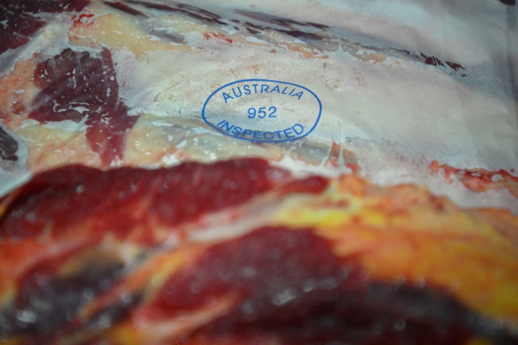 图为澳大利亚库马Monbeef屠宰场内的包装肉类。图片来源:路透社