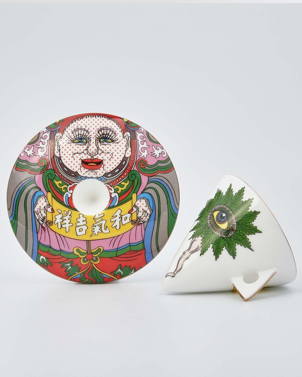 已故日本波普艺术家田名网敬一充满活力的艺术作品装饰了咖啡生活方式品牌Brandor的这款几何咖啡杯。作品上写着中文"福乐和合",其吉祥寓意必将为节日季开启积极基调。shop.mplus.org.hk