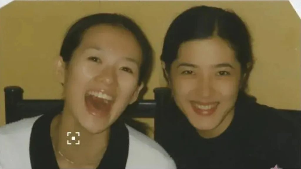 右图为曾黎,左为其同班同学、后成为国际影星的章子怡,两人就读期间曾黎被誉为校花。图片来源:微博