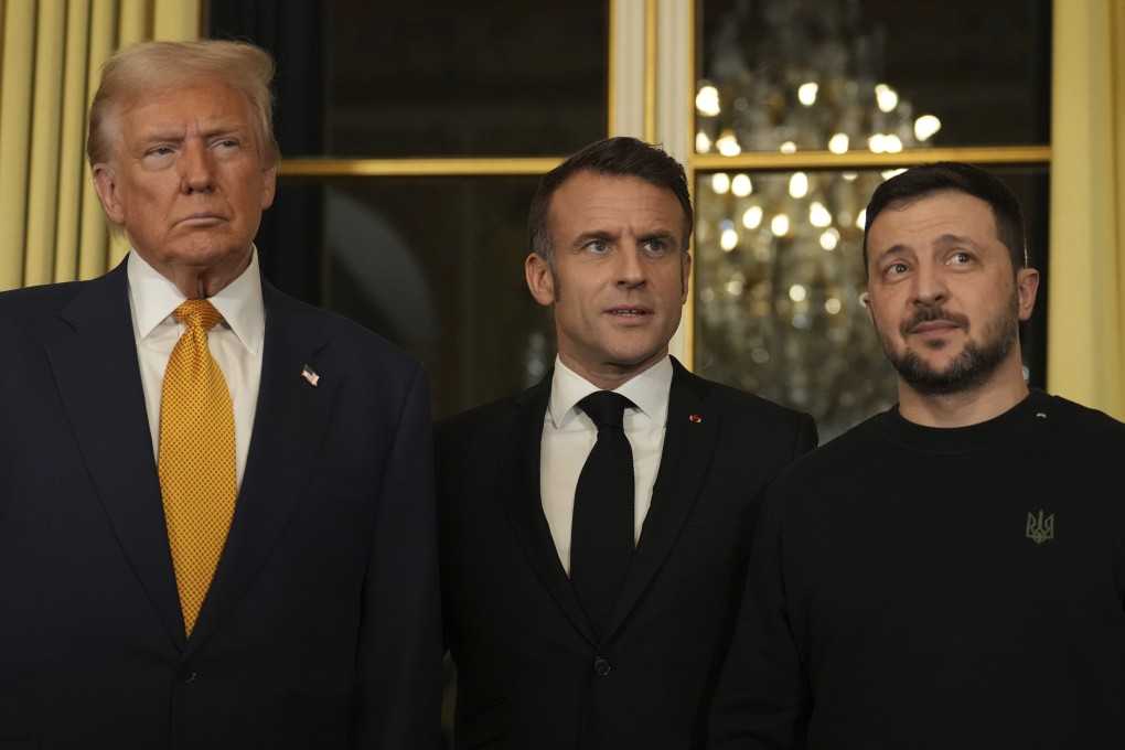 在圣母院仪式前,特朗普与马克龙在爱丽舍宫会谈,乌克兰总统泽连斯基也加入其中。三位领导人共同接受媒体拍照后举行了私下会晤。