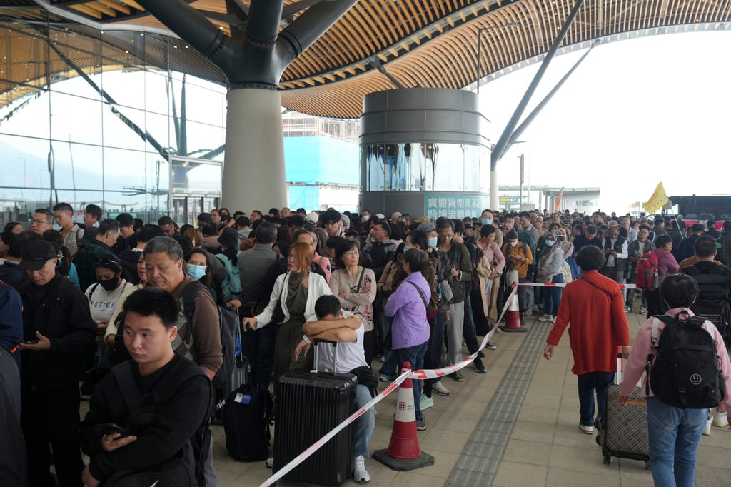 11月24日,人们排队进入港珠澳大桥的到达大厅。照片:Sam Tsang