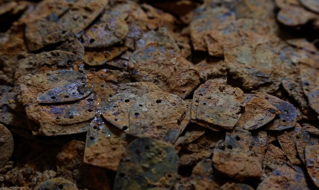 刘贺墓中发现的6000片复合甲片为研究汉代工艺提供了珍贵资料。图:央视