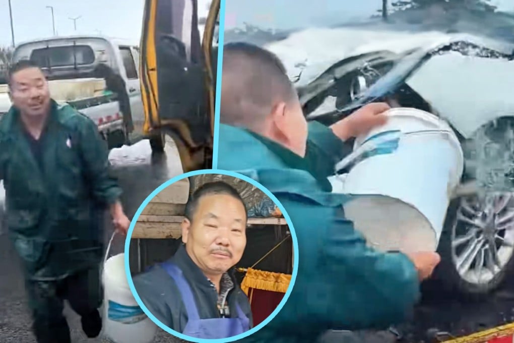 中国东部一名海鲜商贩因抽干运输活海鲜水箱中的水用于扑灭车辆火灾,在 mainland 社交媒体上获得广泛赞誉。