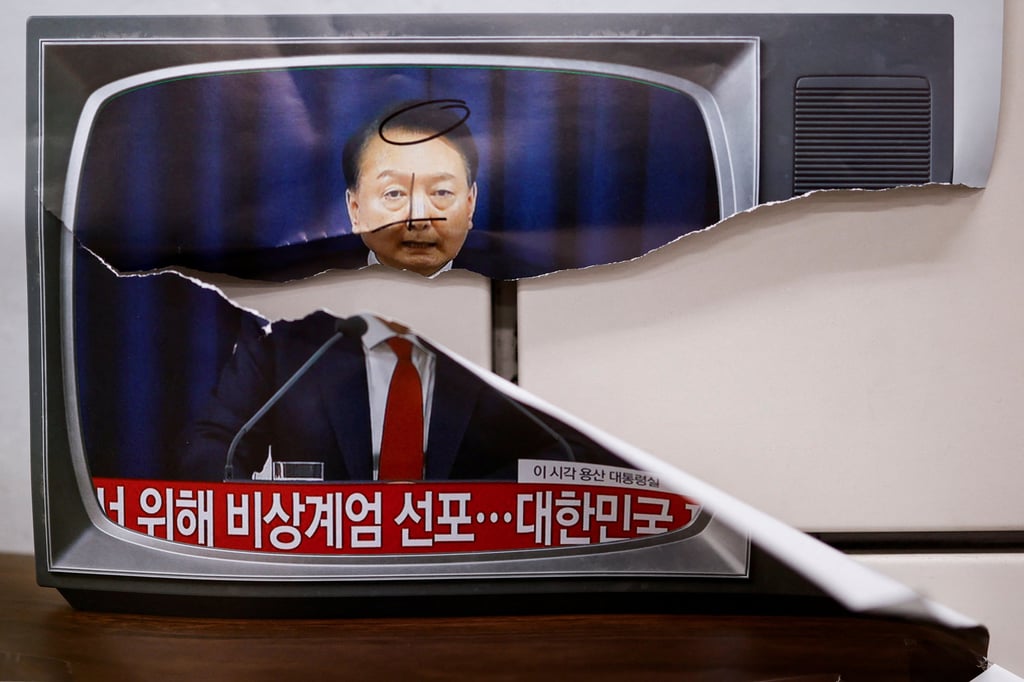 周一,首尔街头出现一张印有韩国总统尹锡悦被涂污形象的海报。照片:路透社