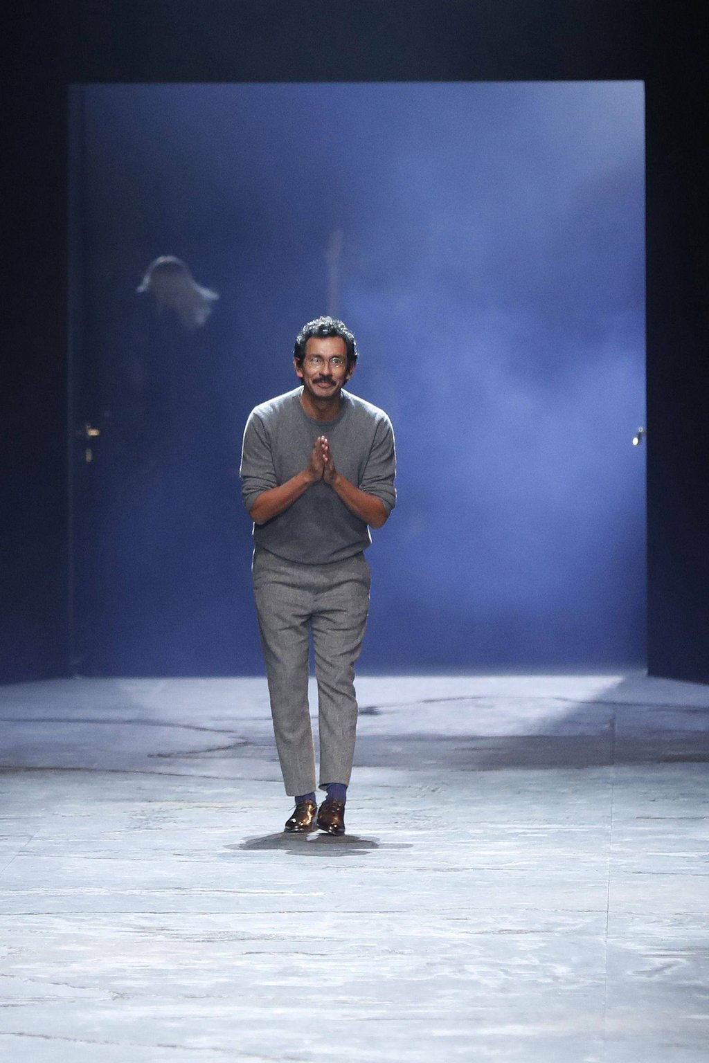 海德·阿克曼在巴黎2017-18秋冬男装周Berluti秀结束时向公众致意。照片:法新社