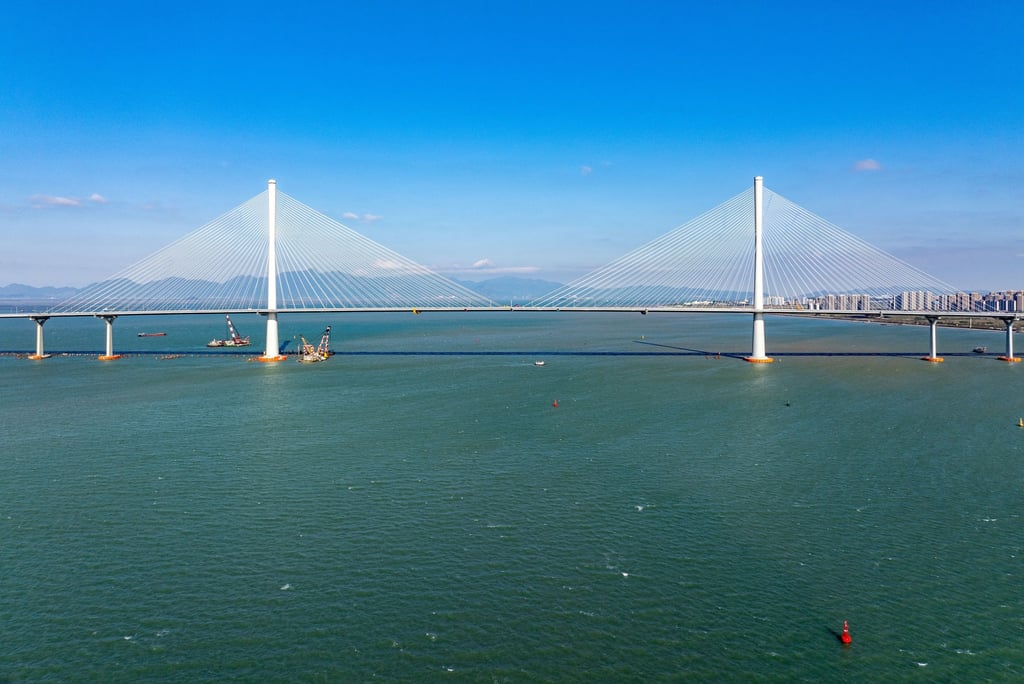 这条跨越陆地和水域的通道由两座斜拉桥、两条隧道和四座互通立交桥组成,预计将使两座城市之间的行程时间缩短至30分钟。