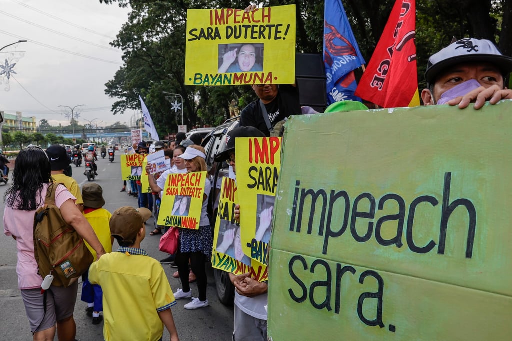 12月4日,抗议者在奎松市举行集会要求弹劾杜特尔特-卡皮奥。图:EPA-EFE