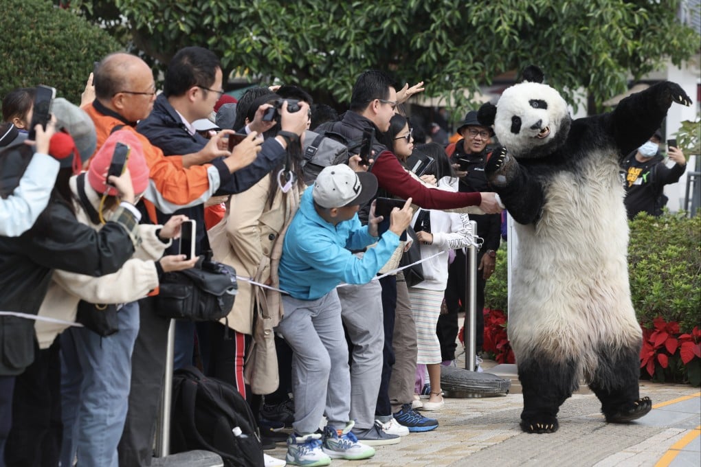一只栩栩如生的熊猫吉祥物和700尊雕塑在上周六为香港昂坪360缆车景点的游客带来惊喜,粉丝们纷纷驻足互动拍照。但也有人指出,香港不应仅靠快闪活动推广熊猫文化和发展熊猫经济。