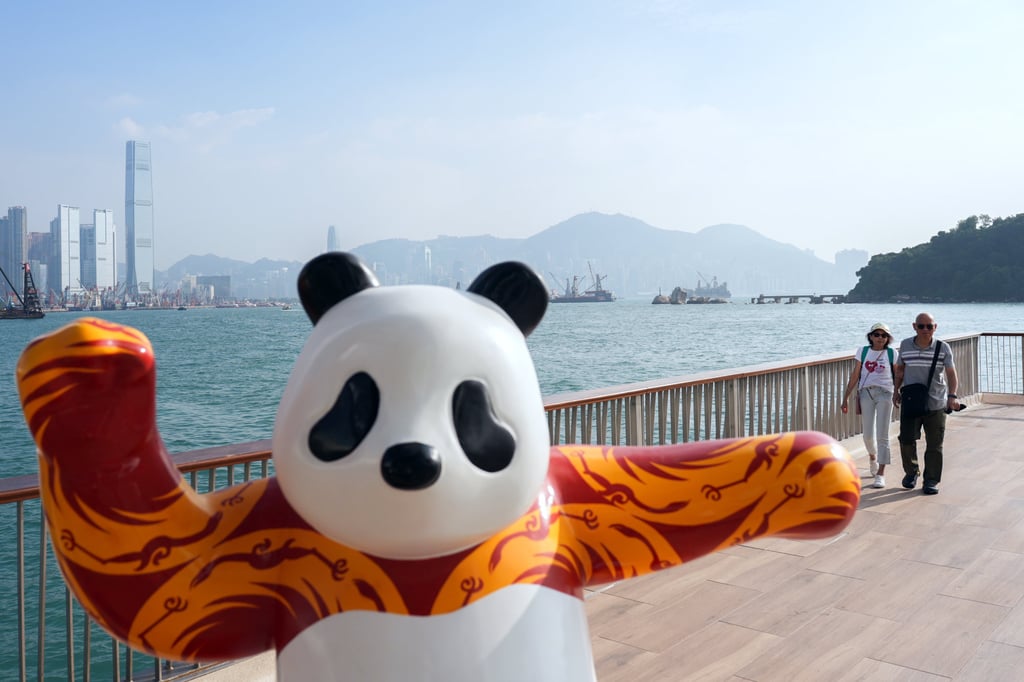 为庆祝第三对大熊猫抵港,长沙湾海滨长廊展出的熊猫雕塑之一。摄影:Eugene Lee