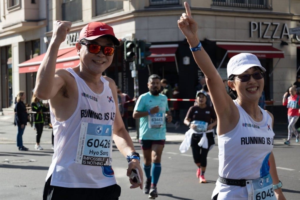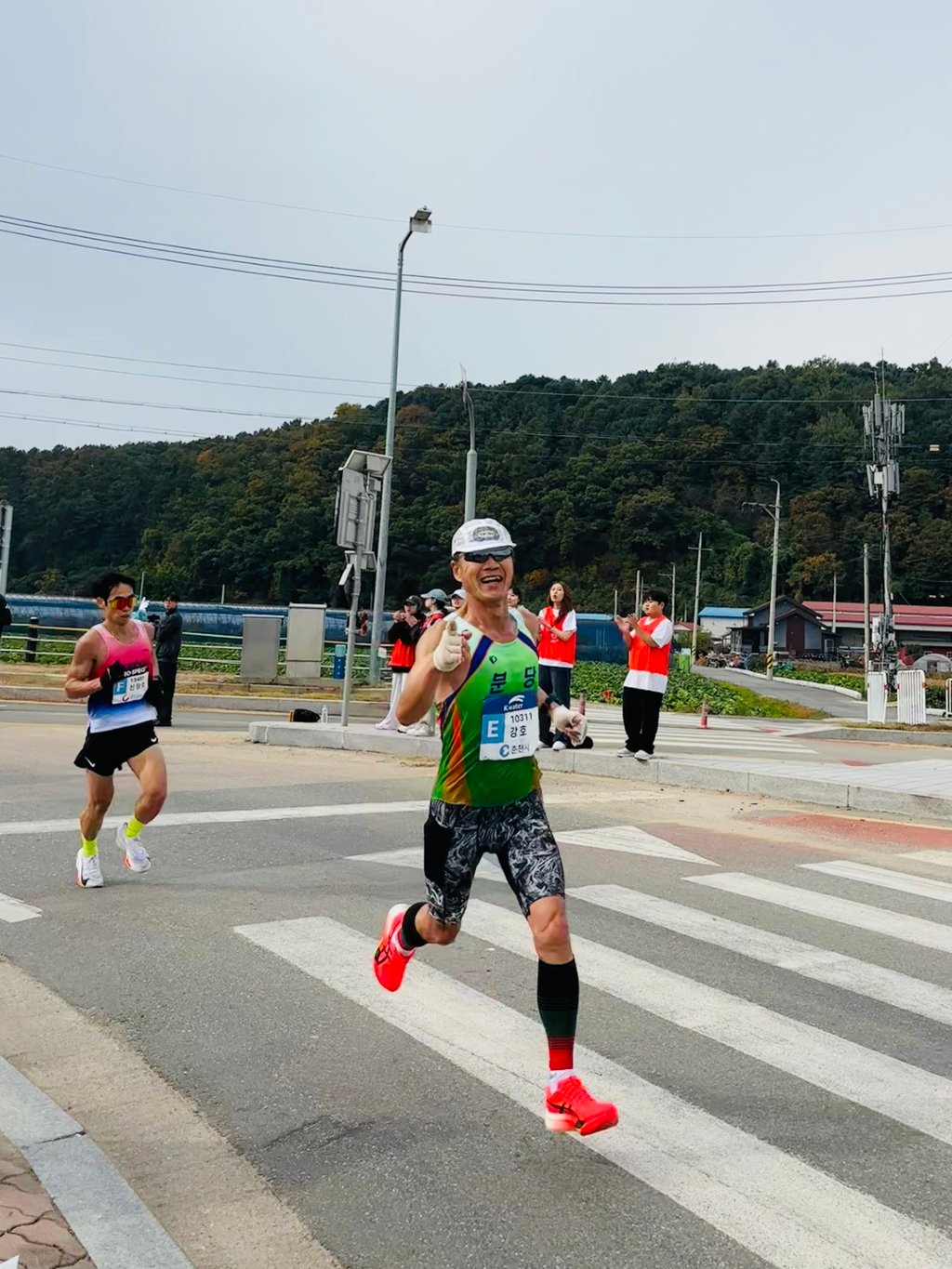 跑马拉松可能是非常情绪化的体验。被誉为韩国最快业余马拉松选手之一的60岁跑者姜浩认为,与他人并肩奔跑对提升表现至关重要。照片由姜浩提供