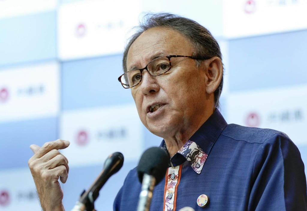 6月6日冲绳县知事玉城丹尼在那霸举行记者会。共同社图片