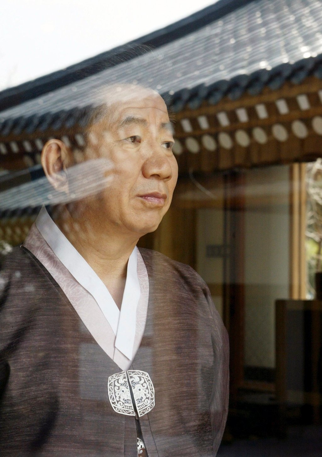 2004年4月,时任韩国总统卢武铉在首尔青瓦台透过窗户眺望。此前在3月12日,由最大在野党大国家党主导的国会通过了对其的弹劾案。图片来源:路透社