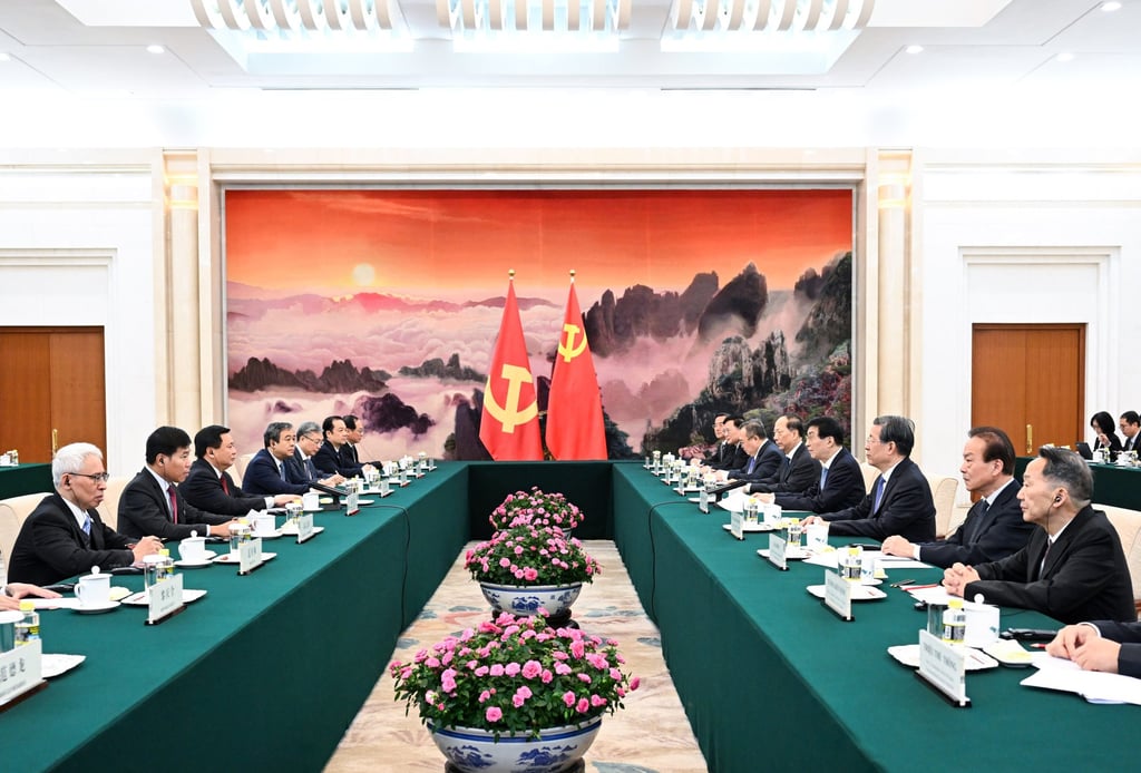 本月早些时候在北京,中国共产党官员与越南官员会晤。图片来源:新华社