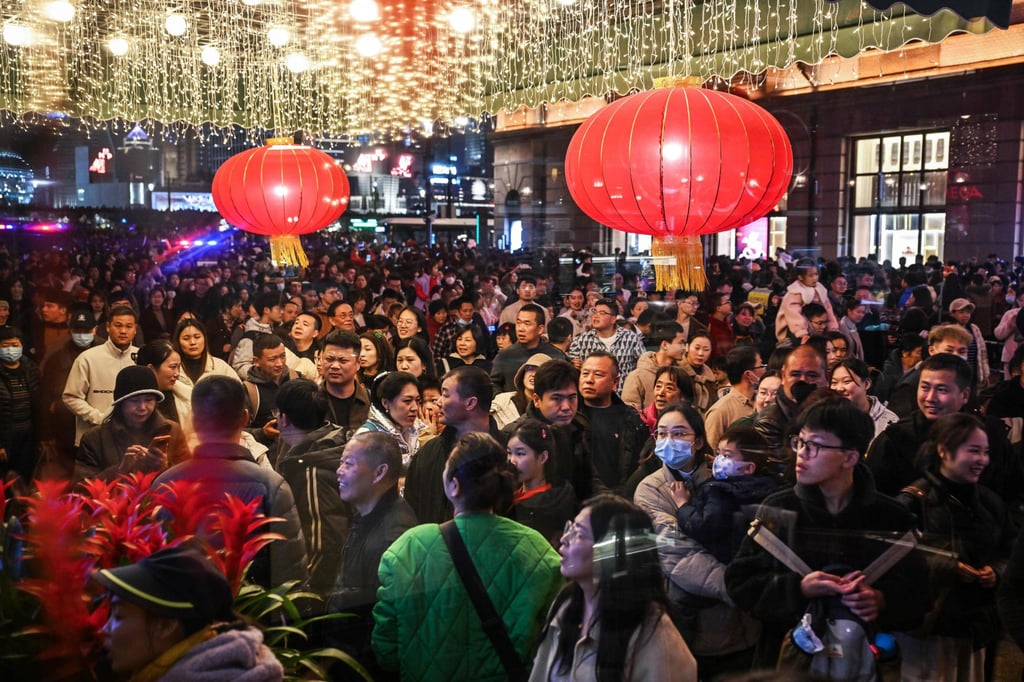 2024年2月春节期间,上海外滩和平饭店前人流如织。图:法新社