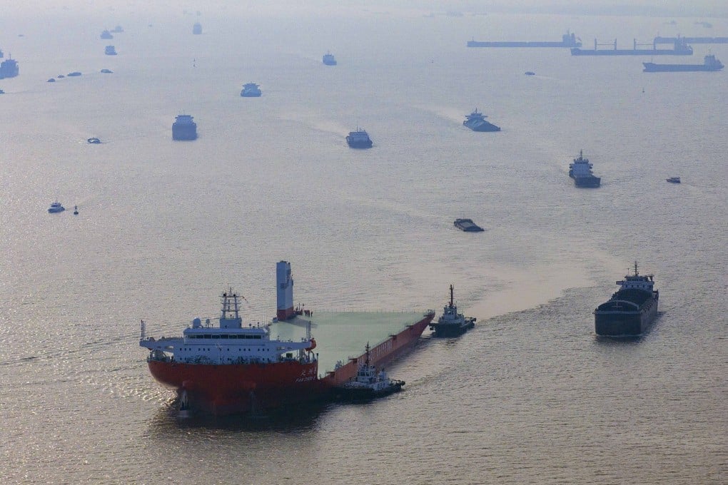 据央视报道,这艘平板型货运巨轮周二从浙江台州中航造船基地启航,在上海以东海域完成"多项专业航行测试"后返港停靠。