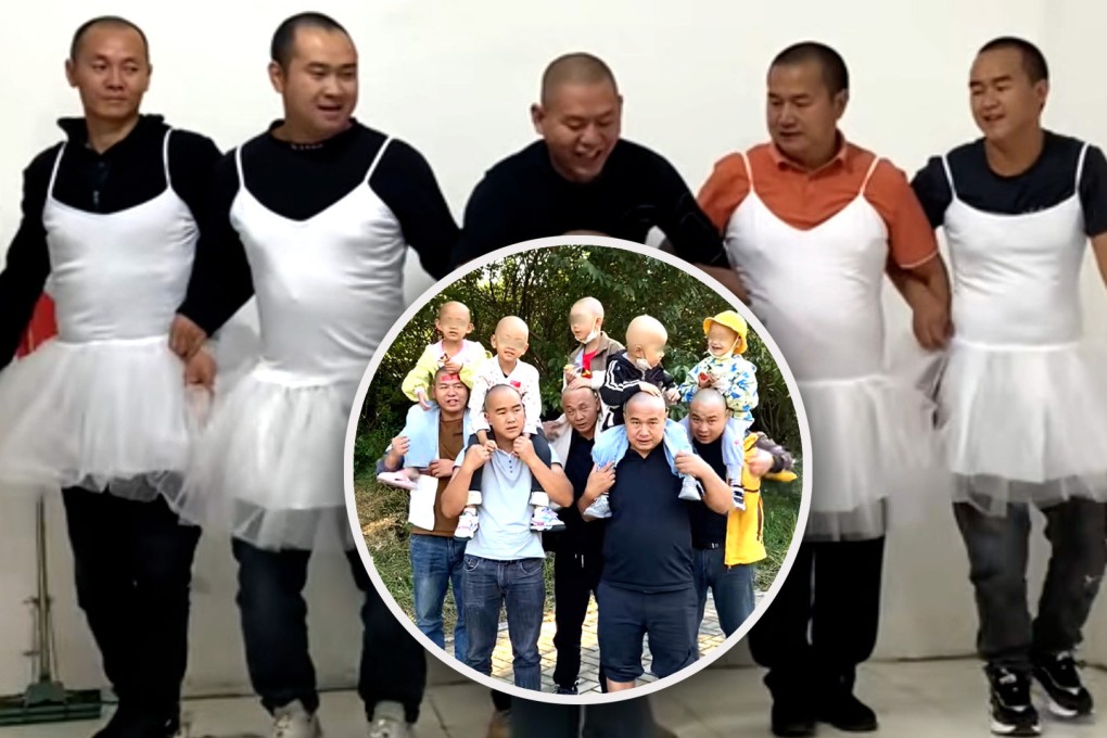 中国五位父亲剃光头、穿芭蕾舞裙,通过表演滑稽舞蹈为罹患罕见癌症的孩子们筹款。
