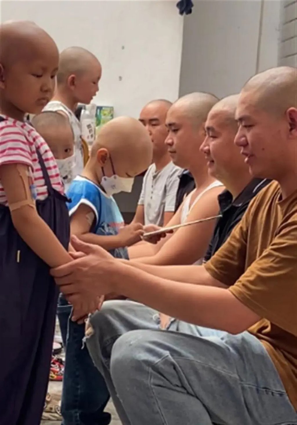 父亲们剃光头是为了让孩子们抗癌时心情更好。图片来源:QQ.com