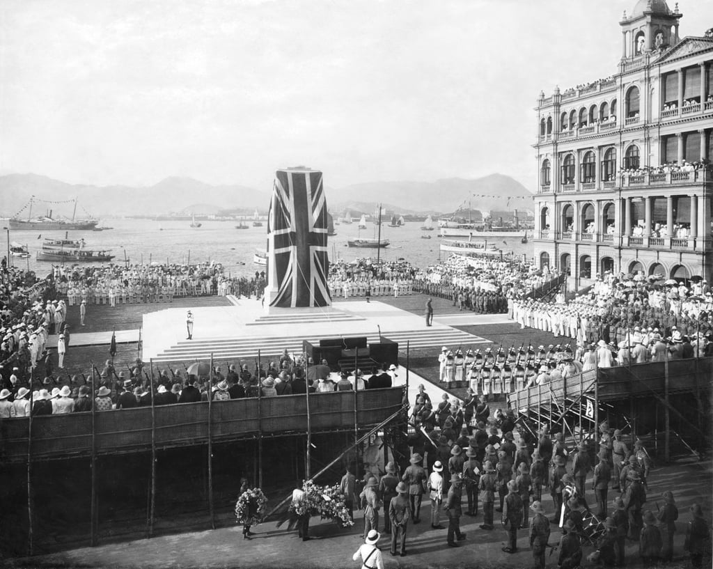 1923年香港中环和平纪念碑揭幕,纪念第一次世界大战阵亡者。1939-1945年日期为后期增刻。照片来源:Gwulo