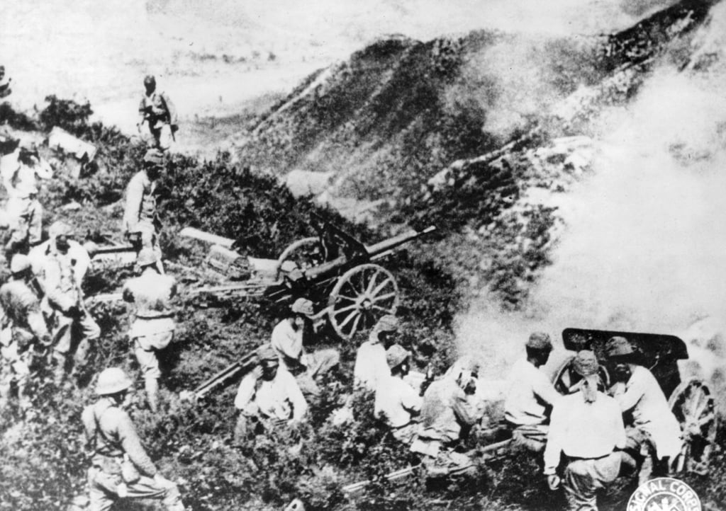 1941年12月24日香港守军投降前夕,日军山炮部队驻扎于渣甸山俯瞰港岛。图片来源:资料图片