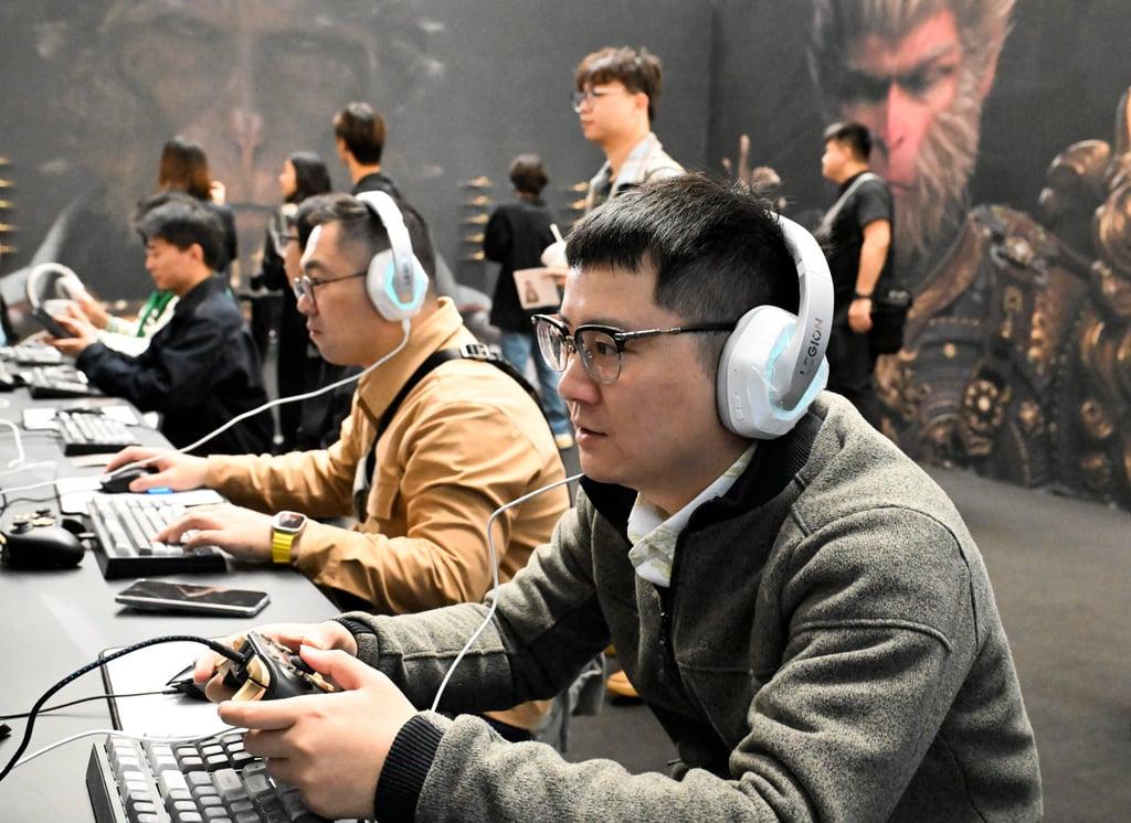 2024年11月19日,参观者在浙江乌镇互联网之光博览会上试玩电子游戏《黑神话:悟空》。图:新华社