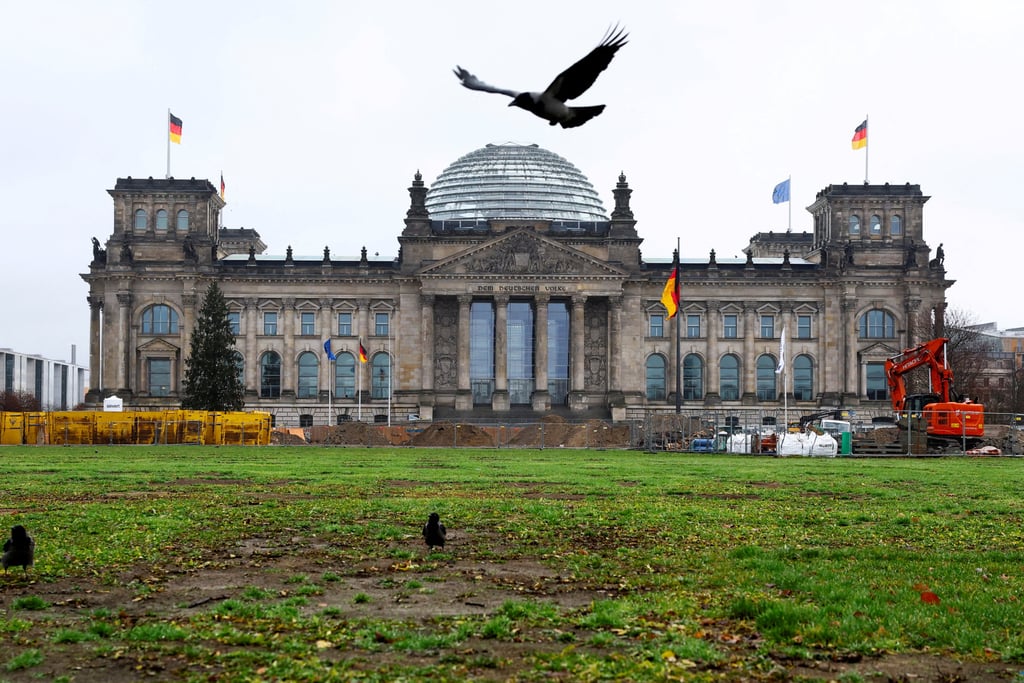 一只飞鸟掠过国会大厦,当日德国总理朔尔茨发起的信任投票未获通过,为提前选举扫清道路。图片来源:路透社