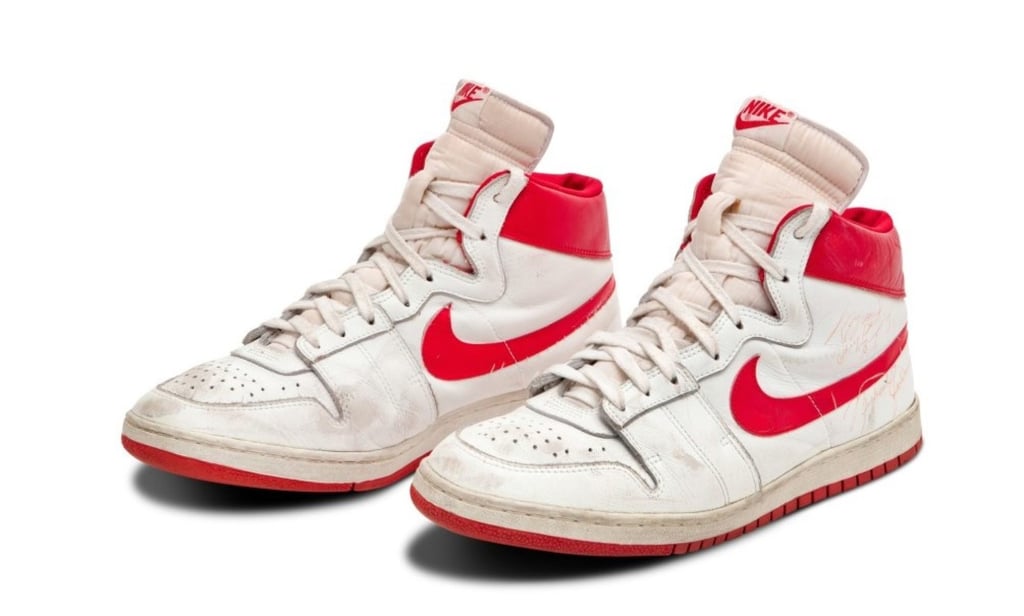 2021年10月,迈克尔·乔丹1984年NBA新秀赛季穿着的一双Nike Air Ship篮球鞋在拉斯维加斯苏富比拍卖行以近150万美元成交。图片来源:苏富比