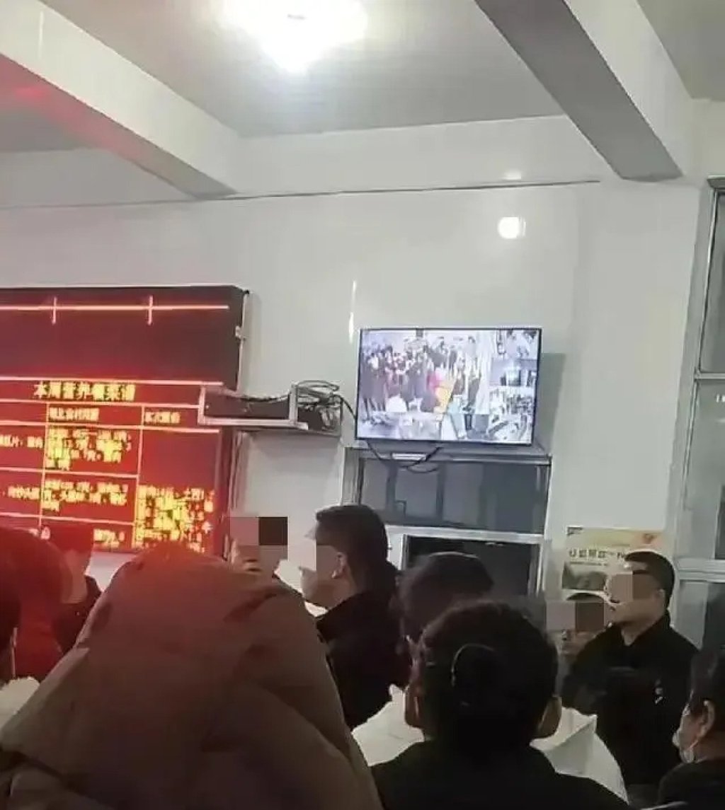 家长们在观看食堂监控视频时情绪崩溃。图片来源:百度