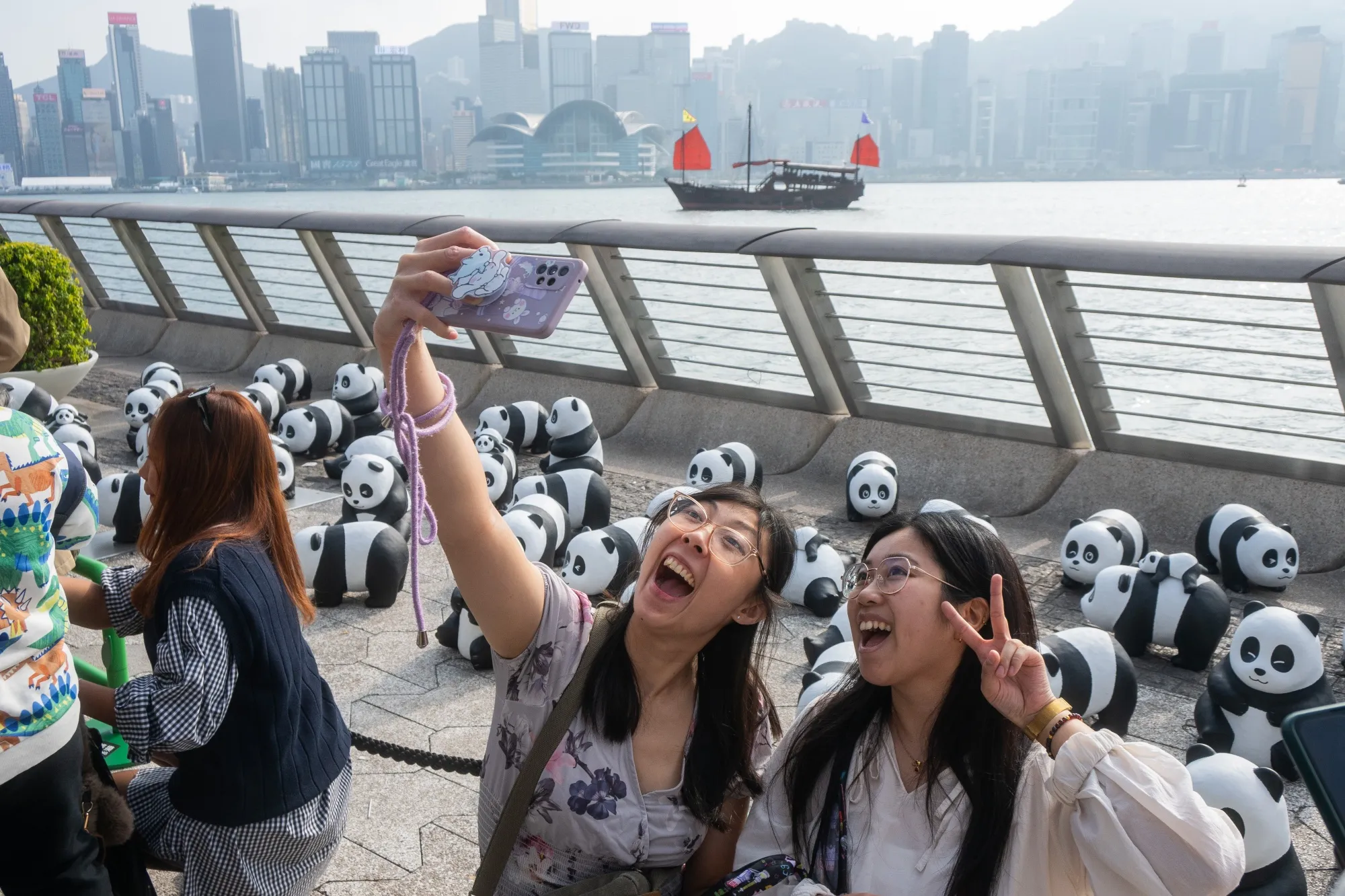 熊猫在香港也是一个热门话题。最近几周,走过星光大道或 孙中山纪念公园会让你想起这一点——迷你熊猫似乎无处不在。香港甚至在2024年底用大约1000架无人机做了一个熊猫形状的灯光秀。