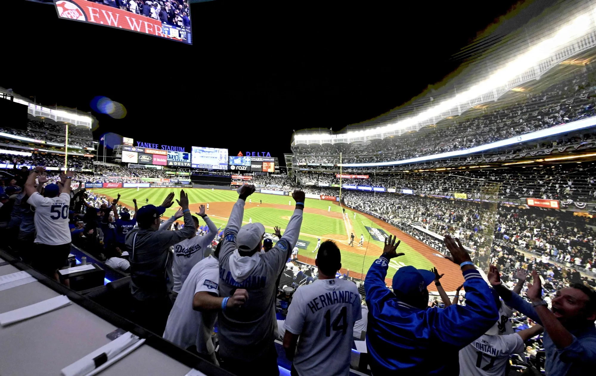 道奇队的球迷在2024年世界系列赛期间在洛杉矶Cosm欢呼。基思·伯明翰/媒体新闻集团/帕萨迪纳星报通过盖蒂图片社