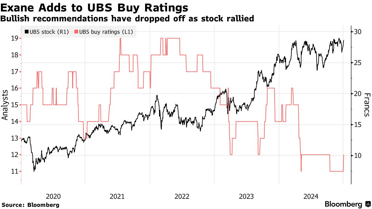瑞银股价上涨,因Exane上调评级,预计回购将增加 - 彭博社