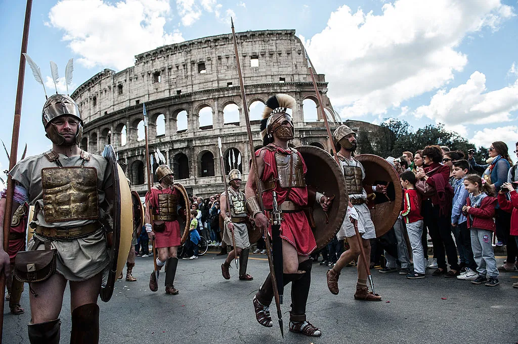 罗马士兵在斗兽场前行进摄影师:乔治·科苏利奇/盖蒂图片社欧洲雪后女王的城堡支离破碎。在伦敦西区最大的老剧院之一皇家剧院的舞台后面,长期热演的音乐剧冰雪奇缘的布景被拆除,以便为两位历史学家腾出空间。汤姆·霍兰和多米尼克·桑德布鲁克站在艾尔莎宫殿的废墟中,等待他们的信号。