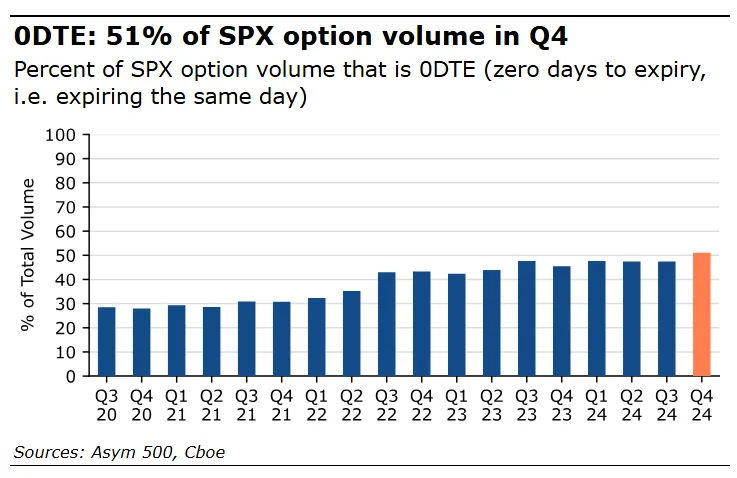 标准普尔500指数的零日期权在第四季度首次超过所有其他到期合约的总和,这是短期合约日益主导的最新里程碑。