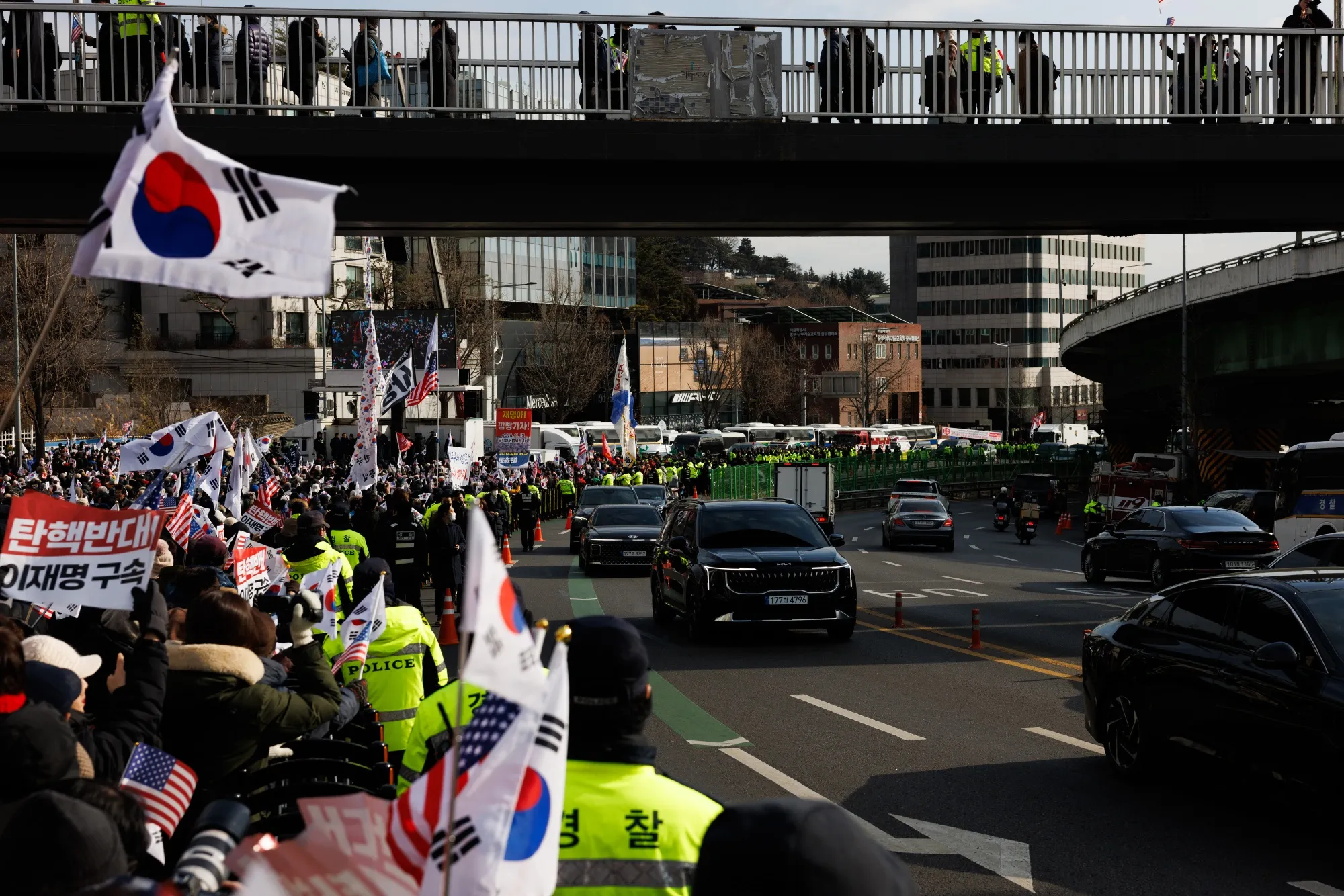 载有韩国调查人员的车辆在未能逮捕总统尹锡悦后离开总统府。摄影师:SeongJoon Cho/Bloomberg韩国法院 驳回了 被弹劾总统尹锡悦律师的上诉,该逮捕令有效期至1月6日,依据韩联社的报道。律师表示,他们计划起诉约150名与执行逮捕令相关的人,朝鲜日报报道。反腐调查人员 未能逮捕尹,在与他的安全团队进行近六小时的对峙后,尝试是在他拒绝多次要求出面接受关于他在短暂宣布戒严当天的行为进行询问后进行的。